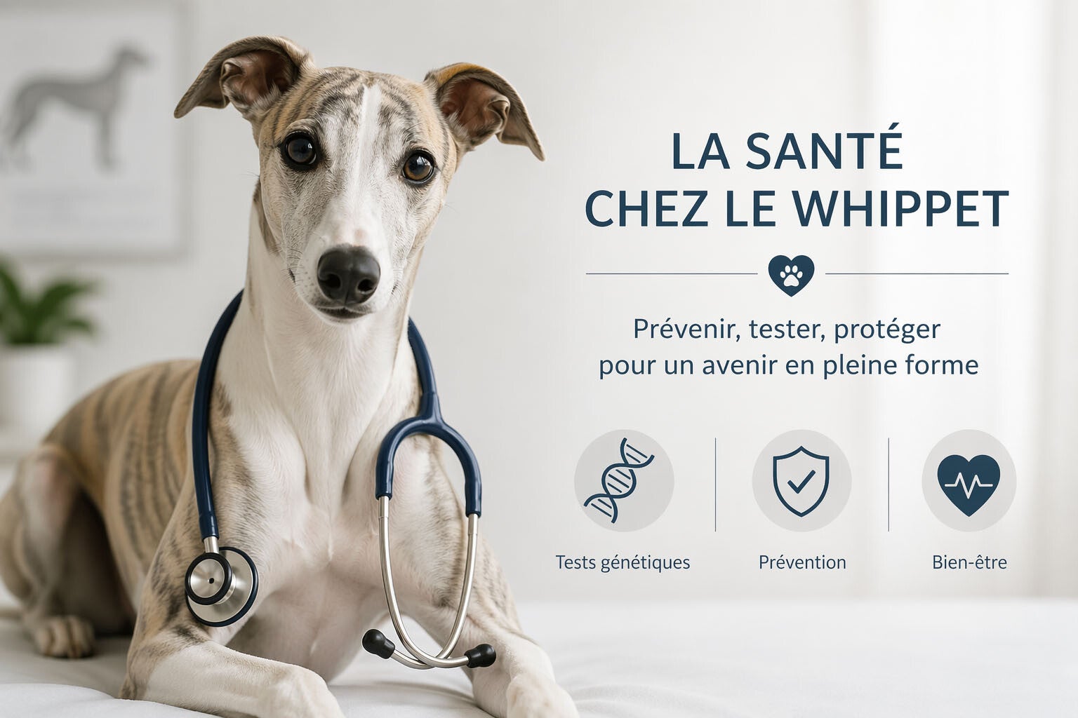 Chez le Whippet, plusieurs maladies héréditaires peuvent être dépistées grâce à des tests ADN fiables. Ces analyses permettent d’identifier les chiens sains, porteurs ou atteints, afin d’adapter les mariages et de limiter la transmission de certaines affections.